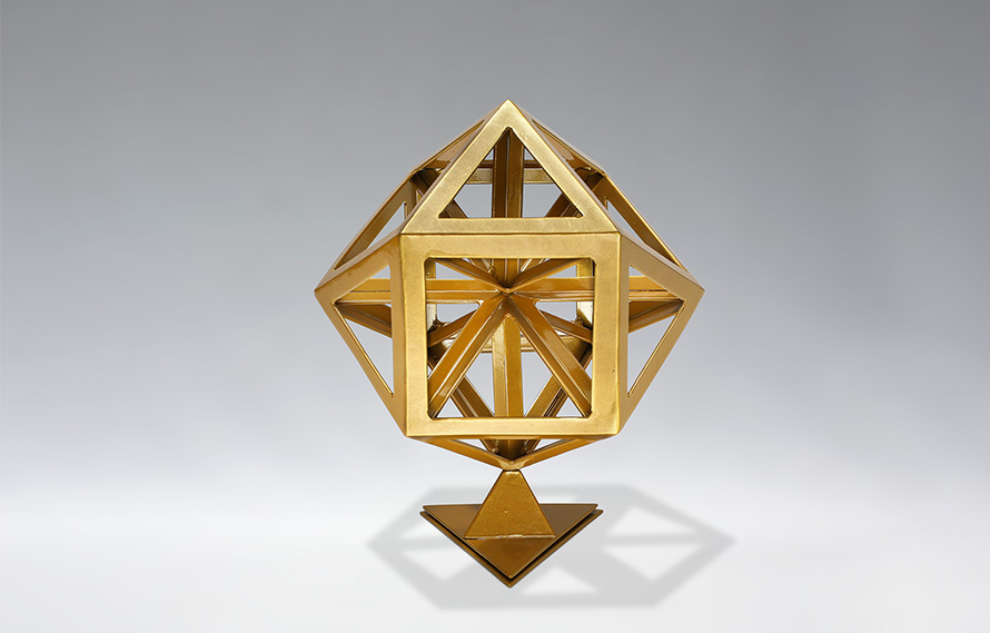Lydia Azout’s sculptures and installations convey her journey: she has found vestiges of ancient, essential forms, and she brings them to life using elements drawn from nature and transformed through human intervention, like metal, for instance, which contains the lessons associated with fire and lasting shapes. Whether covered by the dark patina of iron oxide, or playing with the light reflected by steel, her works open the abstract to the representation of the invisible and radiate a cosmic meaning to the surrounding space.