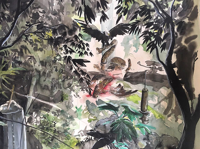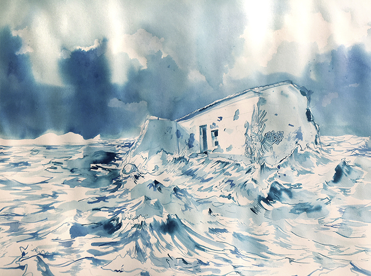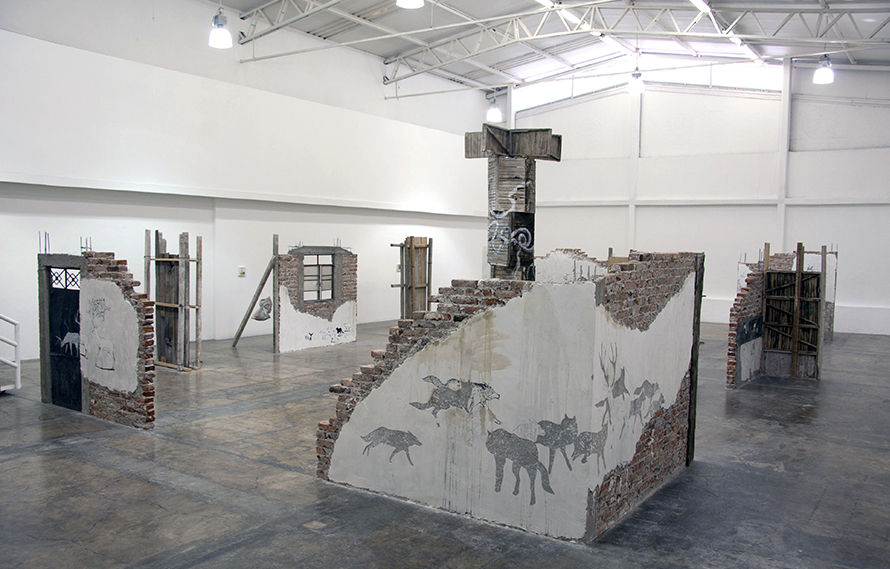 Mexican-born artist Marcos Castro works across a wide range of different media, connecting with the idea of art as a sacred sphere. Primarily based on his drawing skills as a key to his creative process, he also makes painted ceramics, installations, paintings, and murals. The challenge in his ouvres to capture symbolic elements in myths, local stories and in national history or natural environments in order to exploit their potential to generate new identities from old images. “Ruins” are a leitmotif across his work. The essence of this approach is to show subjects in new and revelatory ways, and in doing so to heighten their physical and emotional resonance. This is why Castro is so interested in the power of rituals and mural as they produce a space for commonality and utopia for art experience.