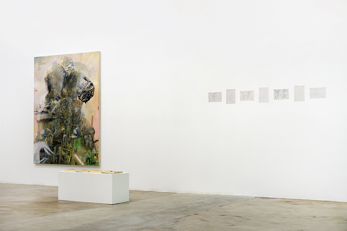 Playgroundstarts with a sculpture by Ariel Morathat focuses on the artist’s fascination with fluorescent colors and illustrations found in children's books. This sculpture is followed by a video installation by Camilo Godoy that presents the artist as a young child reading Colombia’s evening news from 2002. Nearby the drawings of children by VantaBlack focus on victims of gun violence in Miami Dade County. Political memory is a subject in the drawings by Daniel Greenfield-Campoverdeof world maps that he made as a child in his notebook. Next to these drawings are two paintings by Leo Castañeda that investigate the universe of video game imagery to explore the intersection of science-fiction, futurism and post-human reality. The wearable sculptures hung on the walls by Melissa Stabile de Melloinvite the audience to a playful experience that reminds us of childhood toys. In the viewing room, the short film by Arisleyda Dilone engages in a tender conversation between the artist and her mother about womanhood, femininity and Dilone’s intersex body. The watercolor by Chioma Ebinamareferences the social construction of twins in Nigeria before this territory wasspiritually colonized and Christianized. Across from this watercolor are two photographic pieces by Jeanie Choi thatassemble photographs from her family album to reflect on her migration and assimilation process.